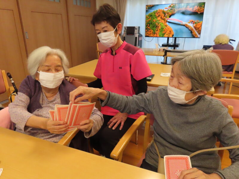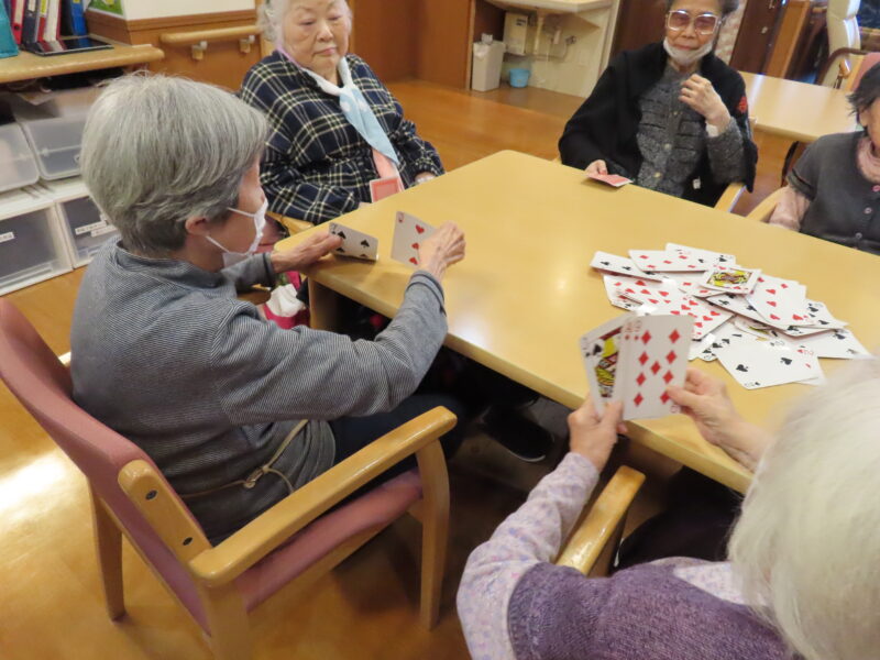 今日はわいわいがやがや、ババ抜きや七並べなどトランプゲームで盛り上がりました。