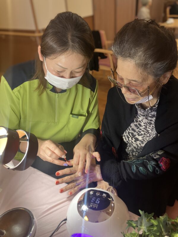 本日はさくらんぼのような明るい色が人気でした。爪の先がキラキラ光り、お客様も大満足です♪