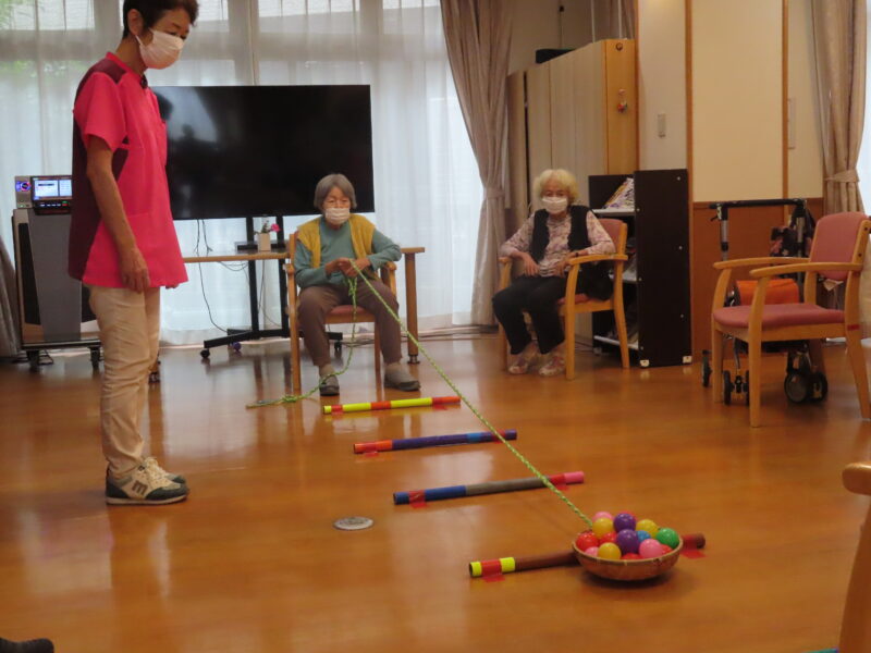 気を付けて引っ張ってみますが…やはりボールが落ちるので、皆さん苦笑いの連続でした。