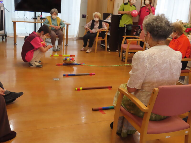 慎重な方はなかなか障害物を乗り越えれず、いかにボールを落とさないか考えてらっしゃいました。