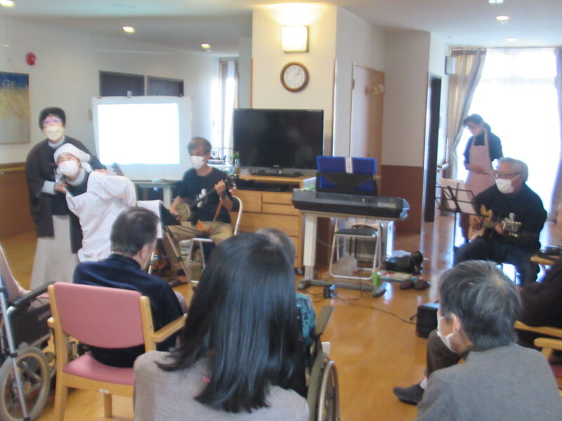 今日はボランティア演奏で『コミックバンド つぐみ』の皆様が演奏&漫才でお越しくださいました。