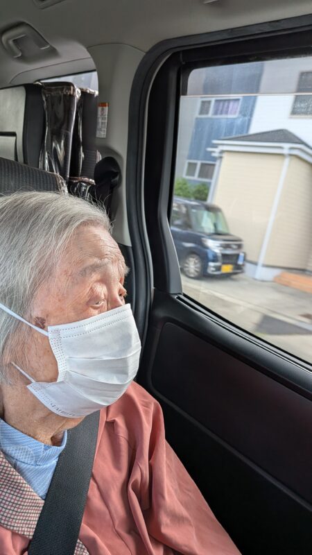 久しぶりの外出に、車内では「久しぶりの外の景色だわ」と、皆様真剣な眼差しで窓の外を眺めておられました。
