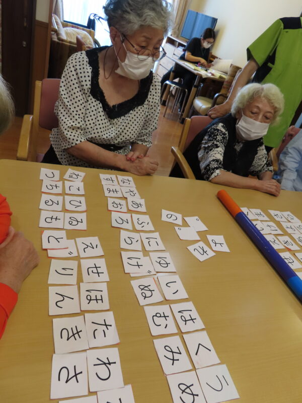 こんにちは小規模多機能です。残暑厳しい日が続いています。皆様いかがお過ごしでしょうか?暑さのあまり、ついついだらだらと過ごしてしまいがちですね。そんなときでも、顔なじみで集まれば元気が湧いてきます!(^^)! 小規模では毎度おなじみの脳トレゲームです。