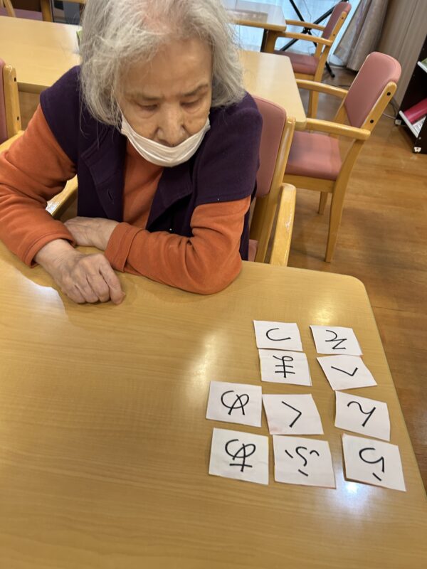 アクティビティでは言葉並べを行なったのですがルールは簡単ですが以外に頭を使います。文字数によっては最後の一枚まで使いきれるくらい根気よく取り組まれることもあります。