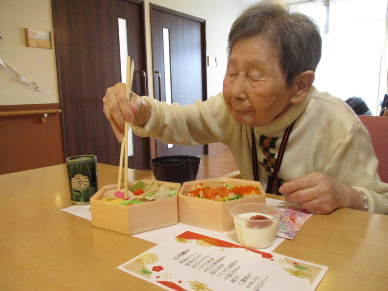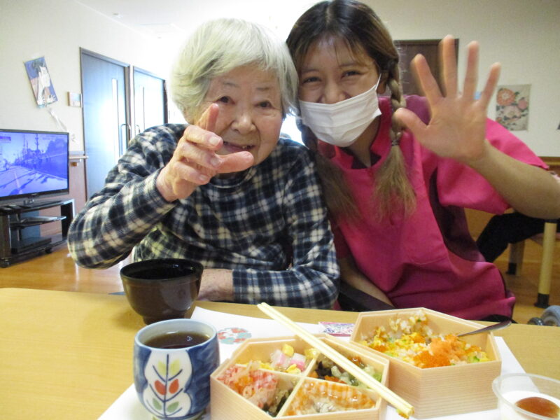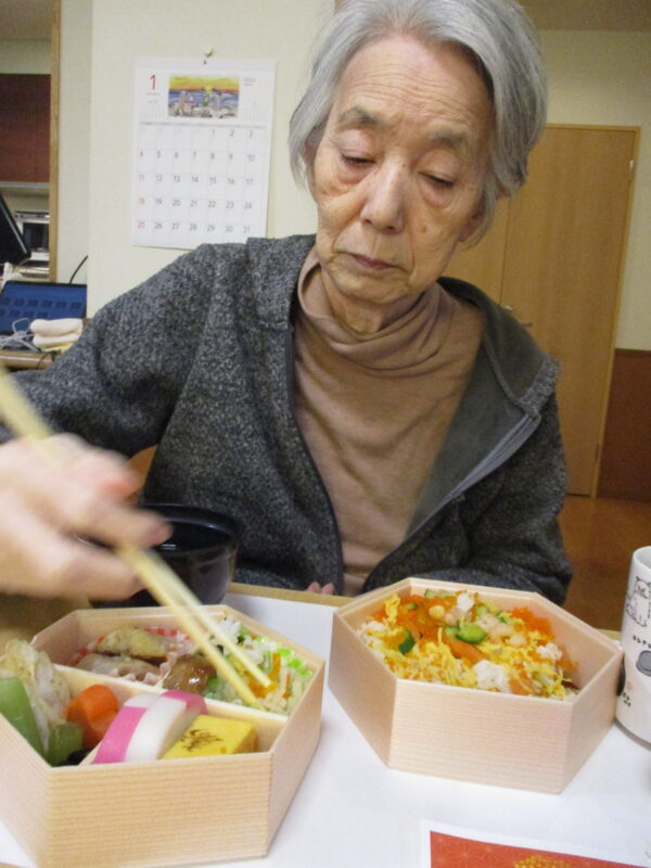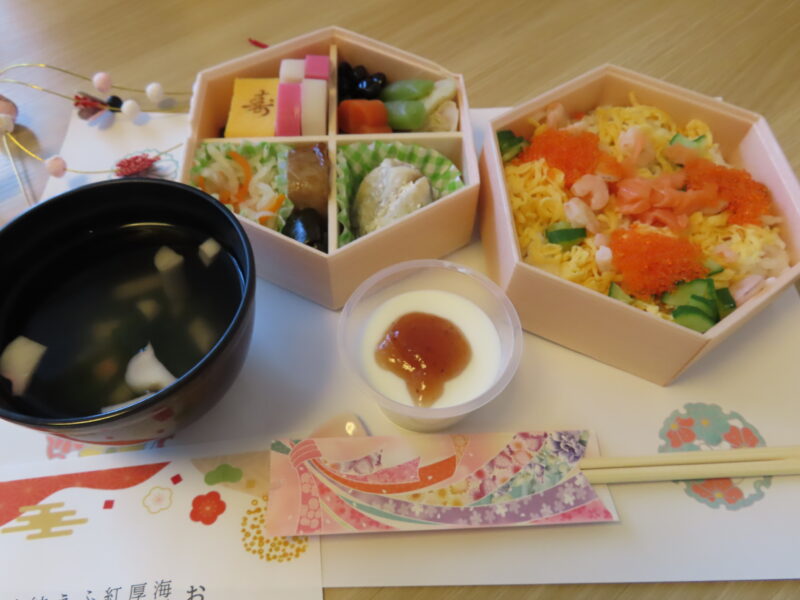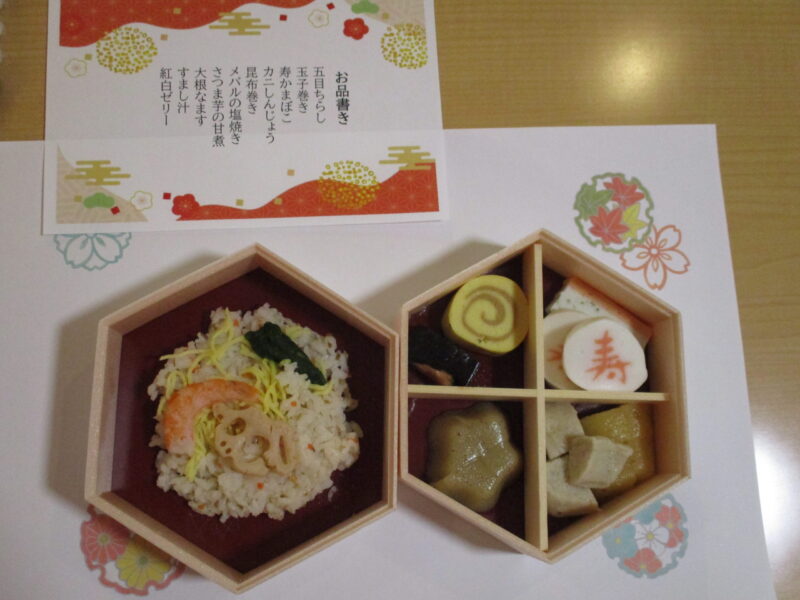 昼食はちらし寿司とおせちを召し上がっていただきました。