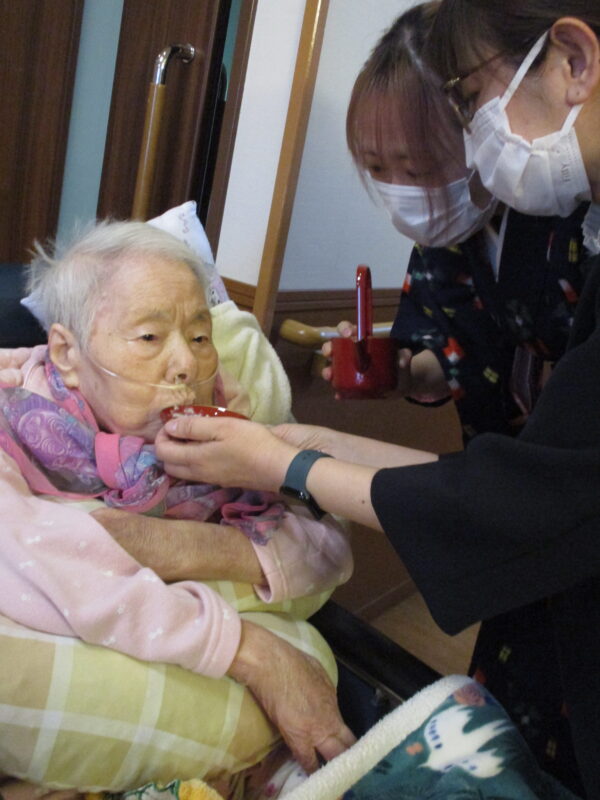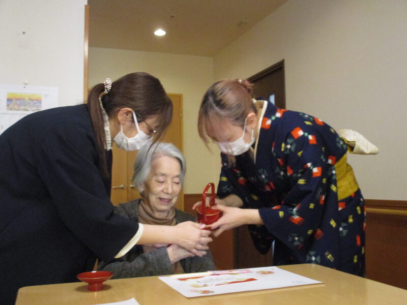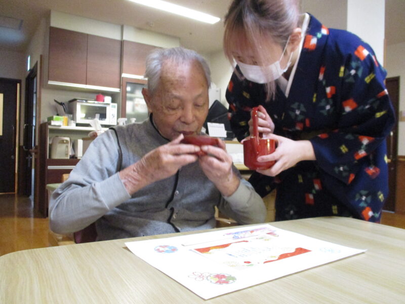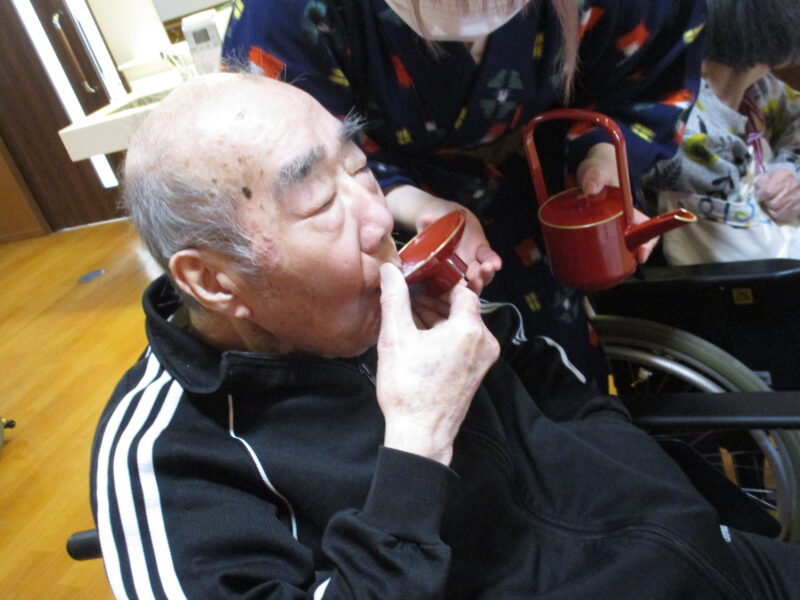 お正月ということで施設長よりお屠蘇が振る舞われました。