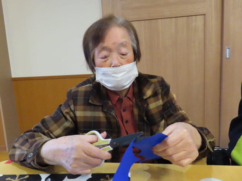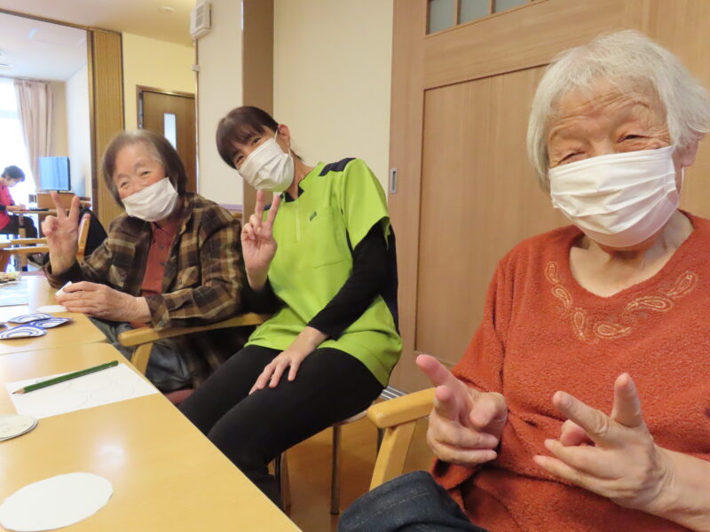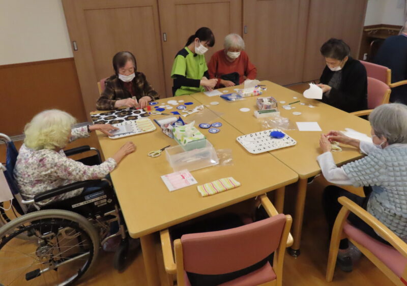 昨日より一段と寒い朝でした。外は寒くてもしっかり体操をして午後から壁紙制作に取り組む小規模の皆様です。