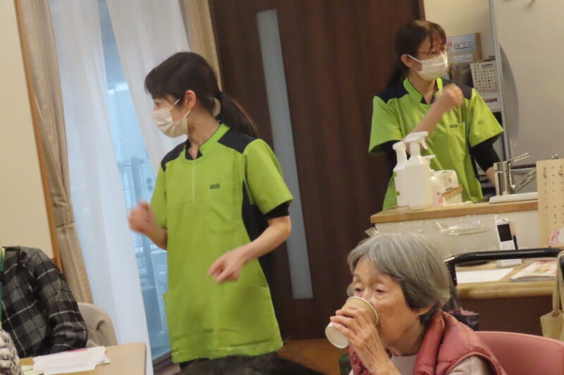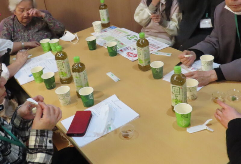 食事形態や嚥下機能についての説明と、普段施設で提供しているソフト食やトロミ付き飲料をご家族様にも試食していただきました。