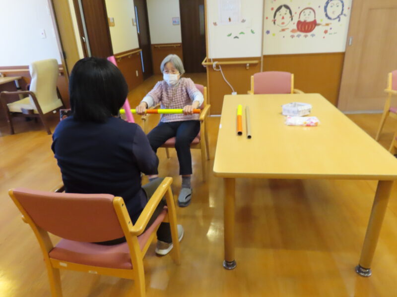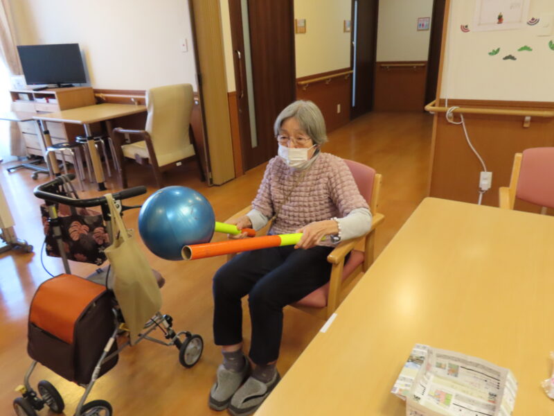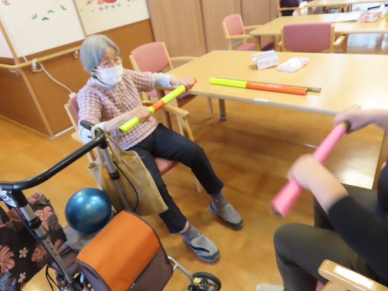 今日は小道具を使って体操を行ないました。