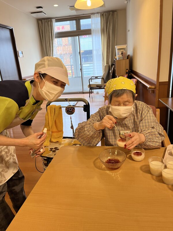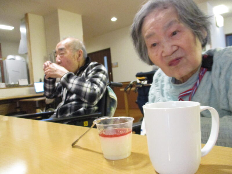 本日は桃の節句のイベントで、おやつに甘酒プリンとひなあられを召し上がっていただきました。