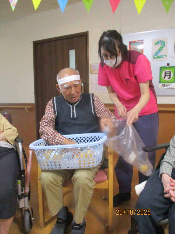 続く「ボールリレー」では、隣の人と協力しながら丁寧にボールを運び、チームの絆が一段と深まりました。