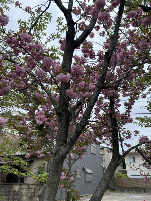 八重桜が咲いていました。関山(かんざん)と言う種類の八重桜だそうです。