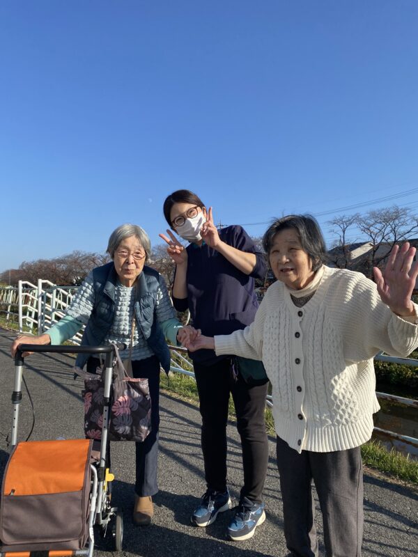 小規模多機能です。暖かい日差しに誘われて、午後から施設周辺へ外気浴に出かけました😊