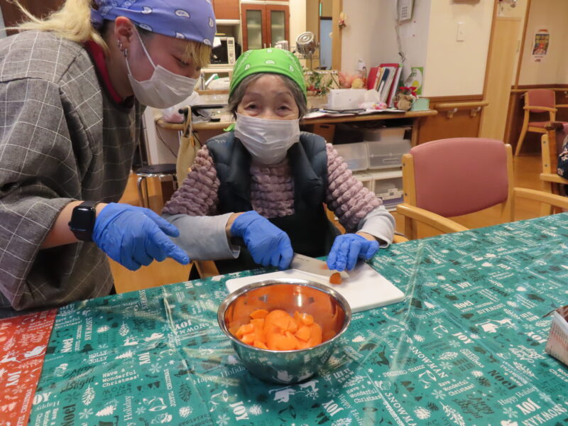 今日は職員とお客様で美味しいスープを作りました🎅野菜たっぷりの具だくさんスープはほっこりと温まり皆様に好評でした。