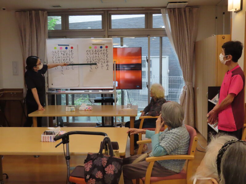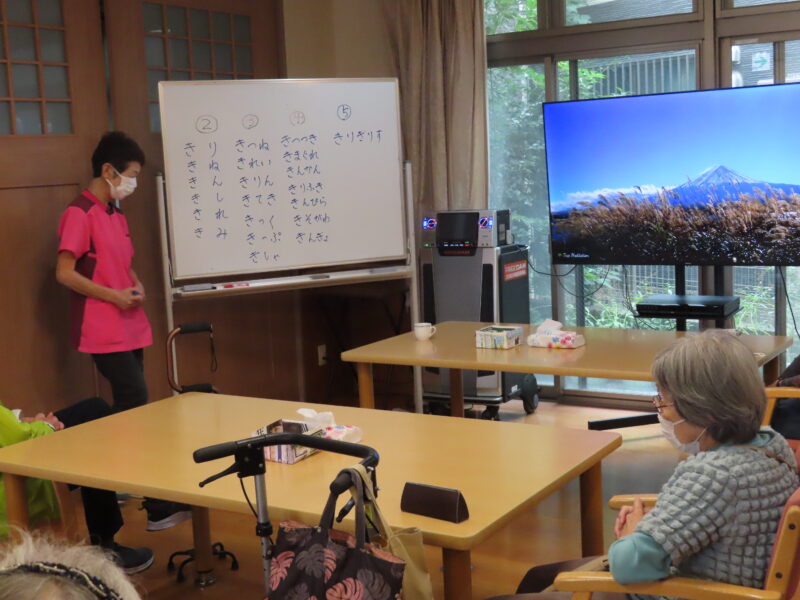 普通のしりとりやきから始まる言葉を文字数に分けて考えて楽しまれていました。
