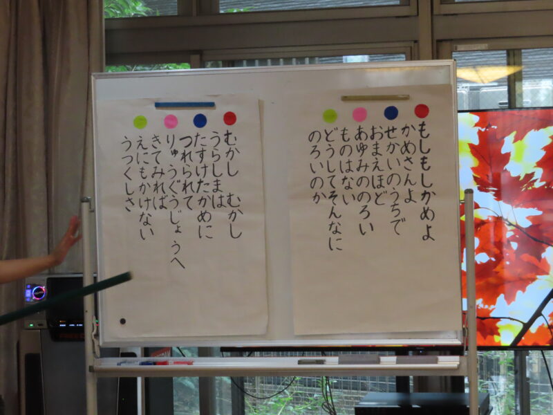 最後は右と左に分かれてリズムが似ている歌をつられない様に最後の音程がつられてしまいみんなで大笑いでした(*^^*)