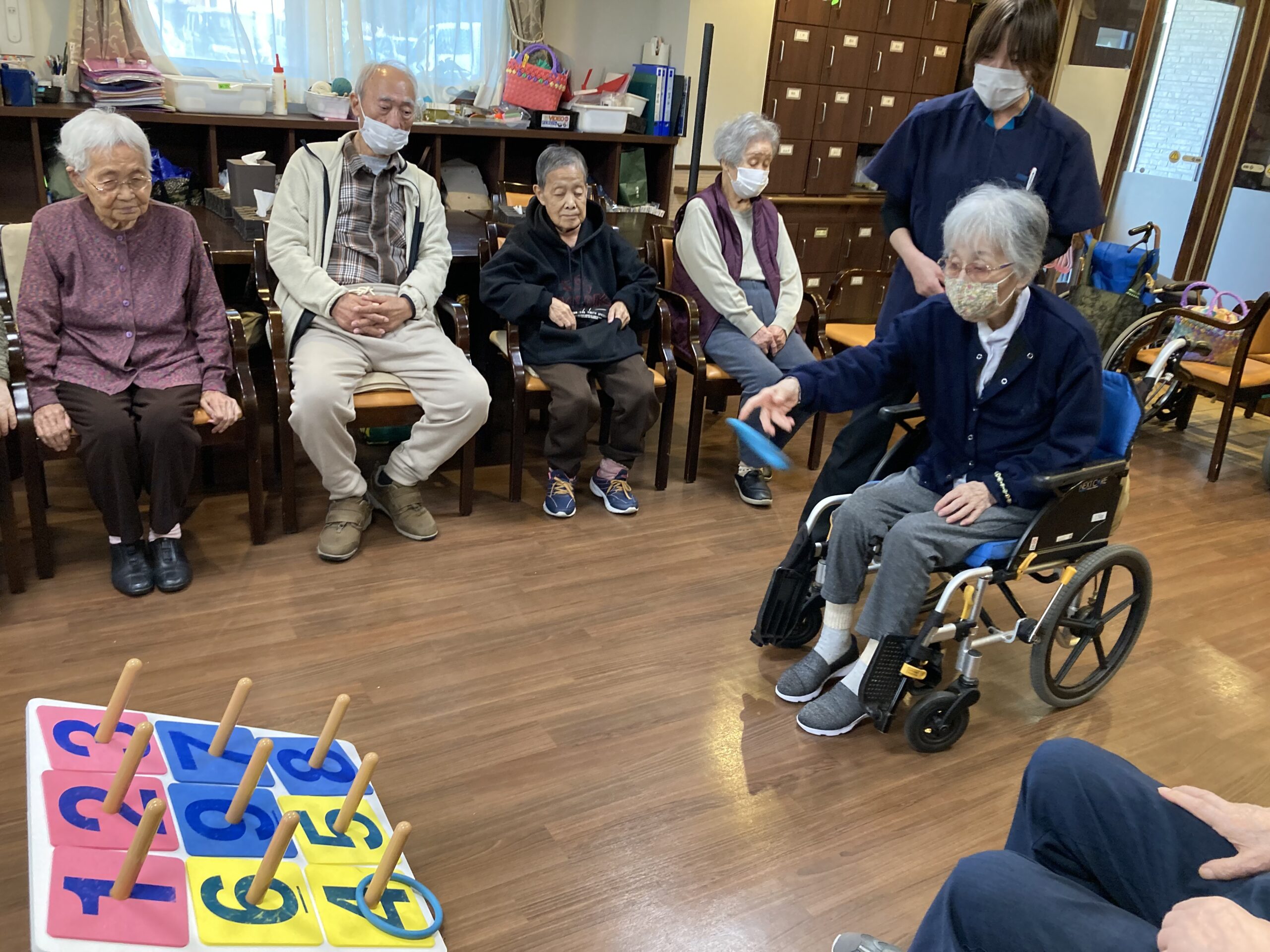 今日はお日様が出ていましたが少し肌寒い1日でした。 午後からのアクティビティは輪投げとお手玉投げをしました。 輪投げは中々狙いを定めるのが難しく点数が伸びませんでしたが お手玉投げでは高得点連発でした[...]