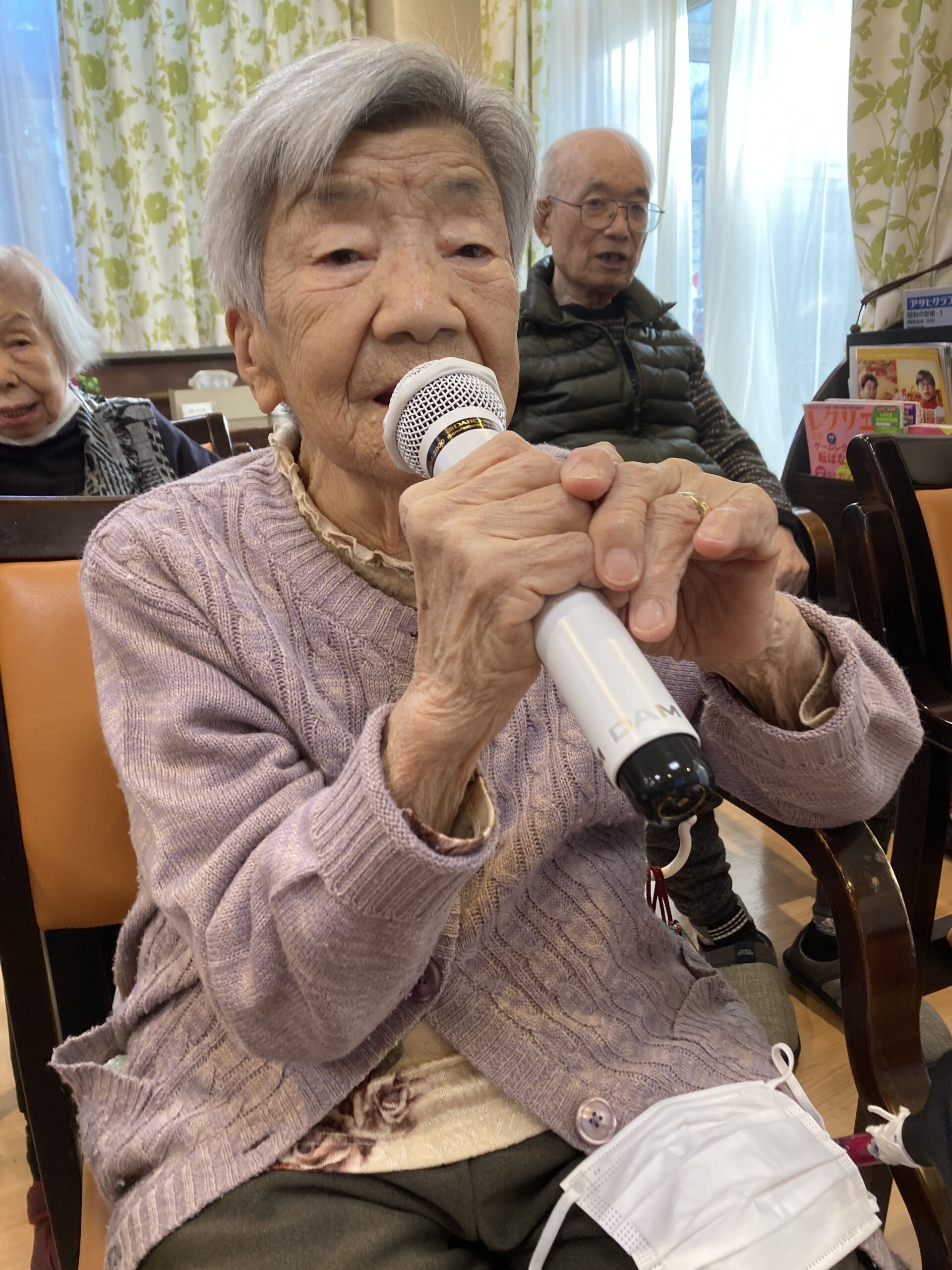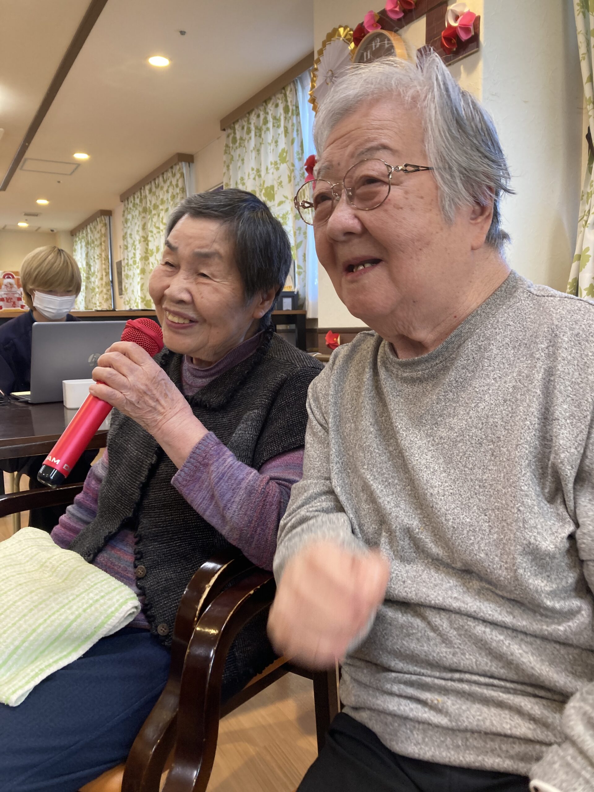 本日、今年最後のカラオケ大会を行いました。 本日も2階の方が参加して下さり、大人数で行いました。 マイクを持たない人も皆様大きい声を出して楽しまれています。 最後は童謡の『お正月』で今年最後のカラオケ[...]