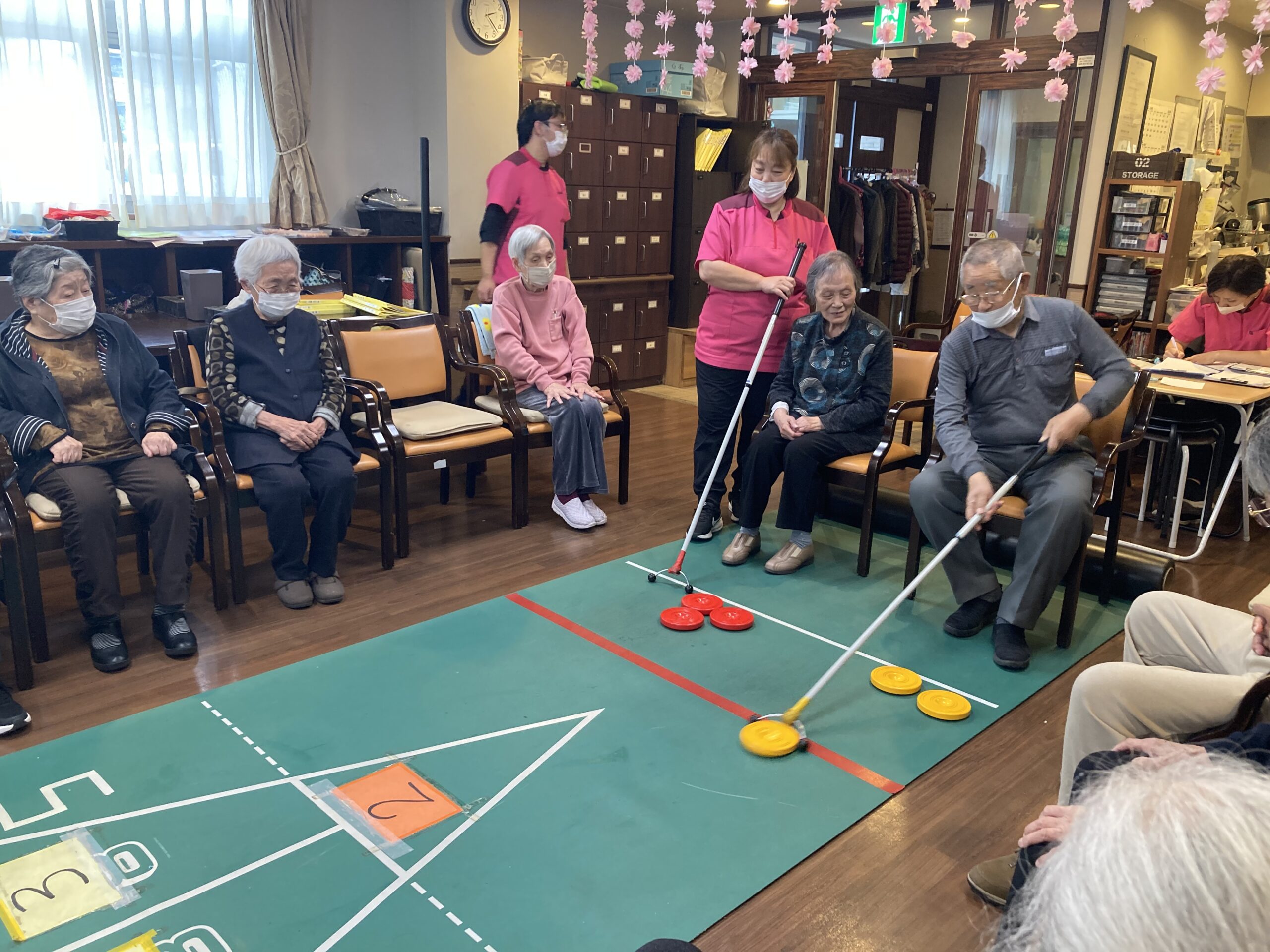 今日は朝から生憎の雨模様でしたが、みなさん元気に来所されました。 本日のアクティビティはカーリングを行いました🥌 ストーンを打つ際には真剣な表情で取り組まれていました。皆さまからの「頑張れ!」と熱い声[...]