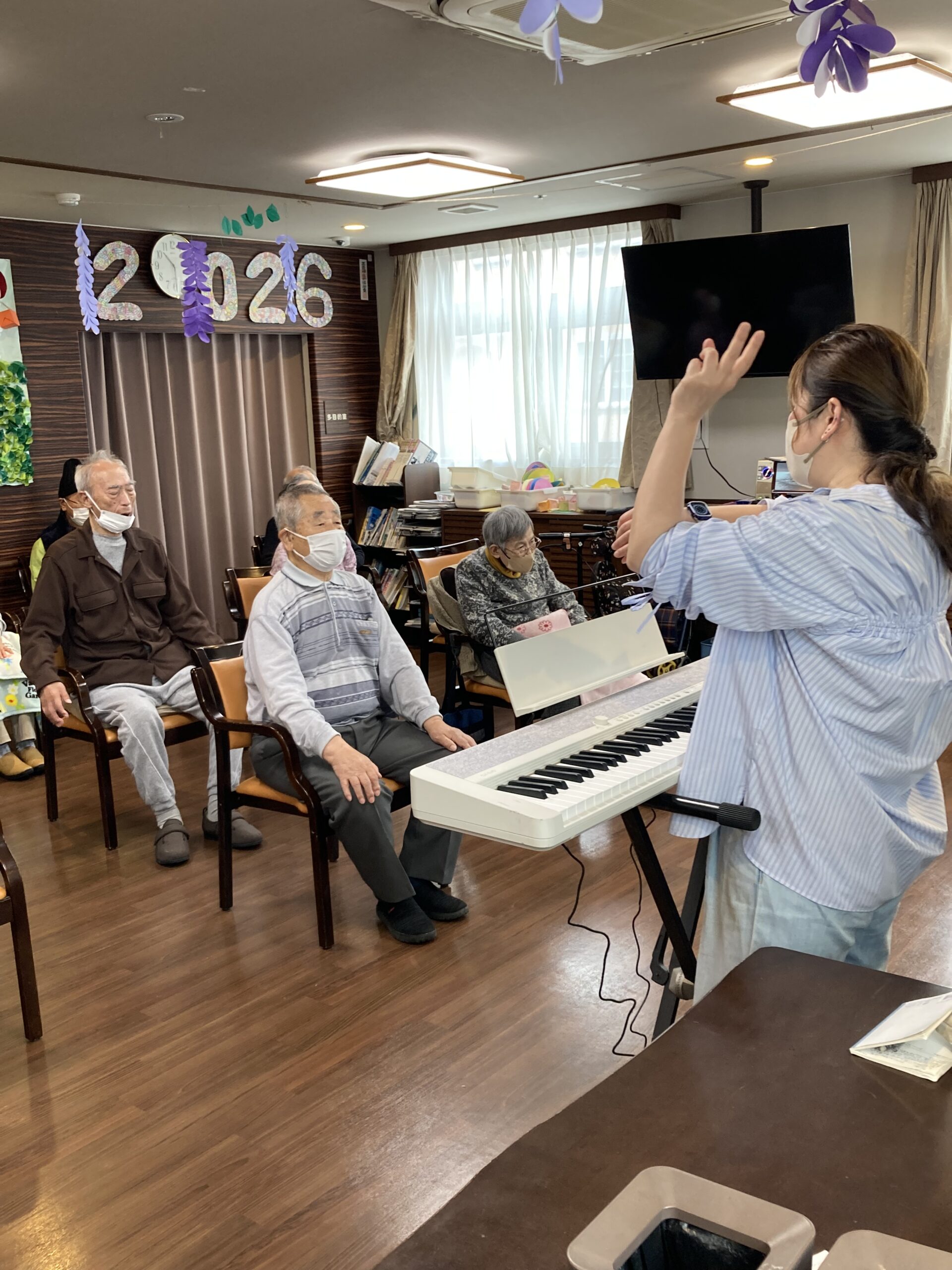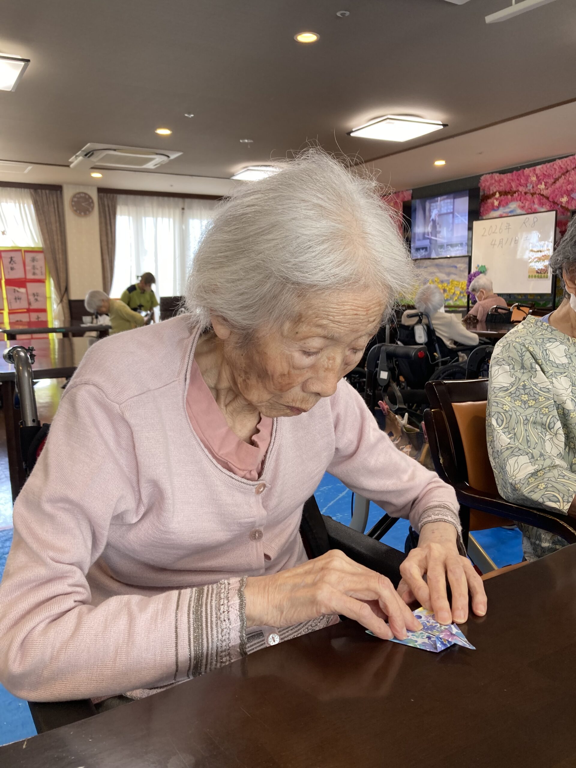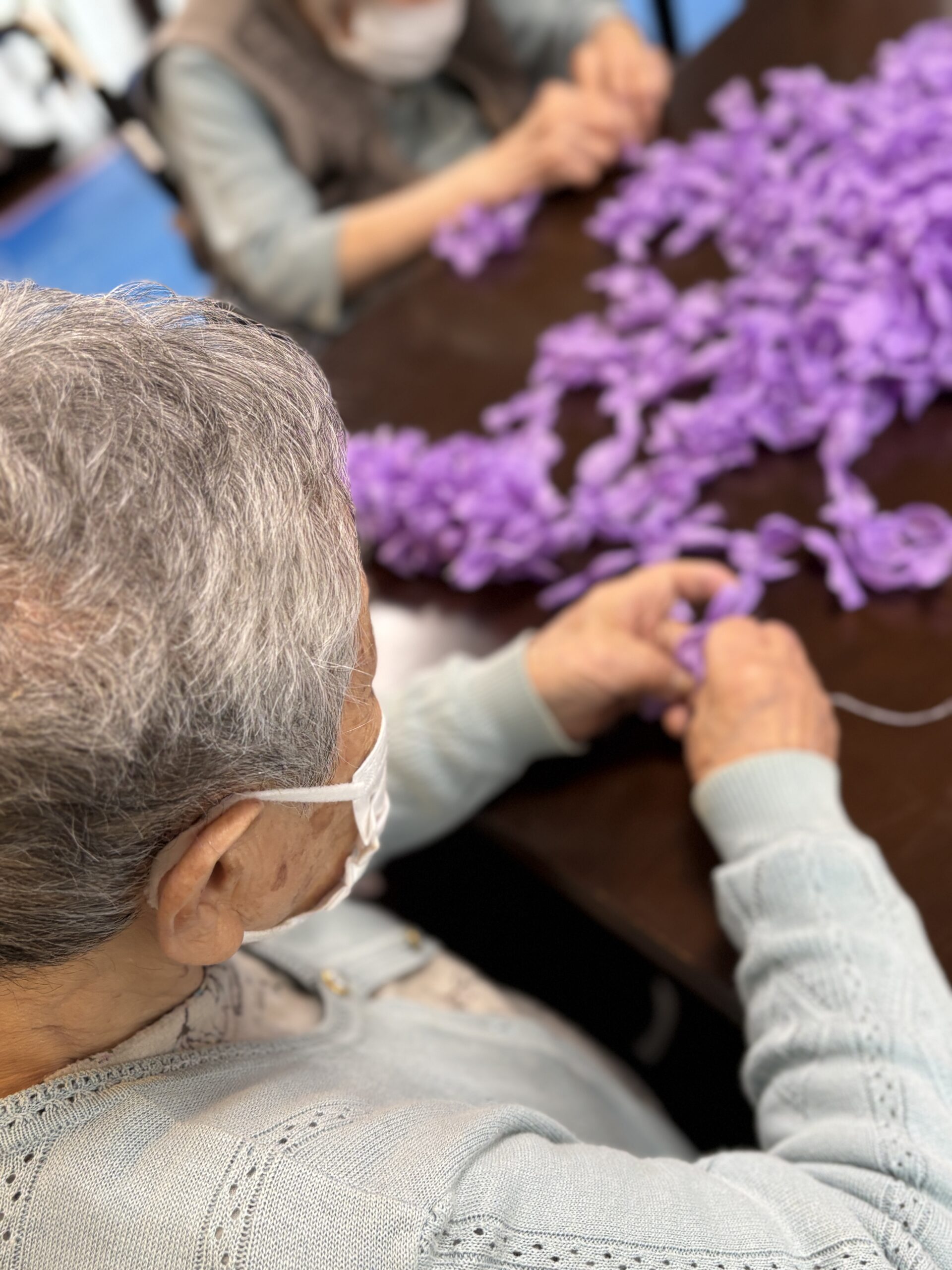 今日は季節を感じる制作レクリエーションとして、花紙を使った藤の花づくりを行いました💐 やわらかい花紙を一枚一枚丁寧に重ねていき、指先を使いながらふんわりとした藤の花を表現していただきました。色の組み合[...]