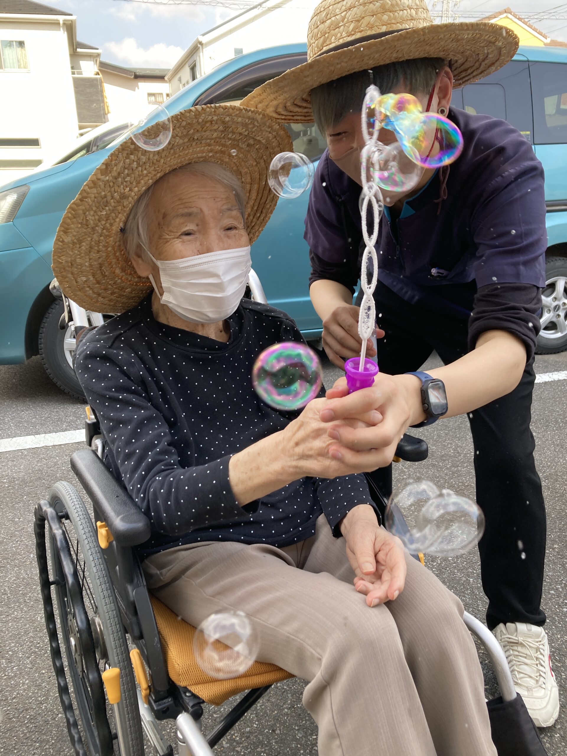 本日の午後は初夏の爽やかな陽気の中、外でバクダンゲームをしました。 音楽に合わせ風船を回し音楽が止まったらSTOP‼️ 心地よい風を感じながら、皆さま「気持ちいいね」「外はいいね」といった 声も聞かれ[...]