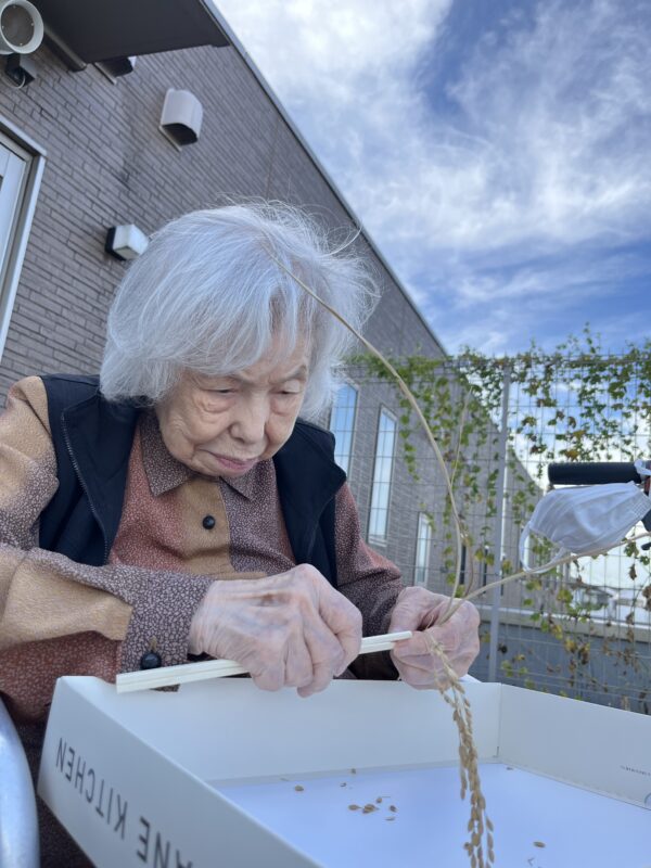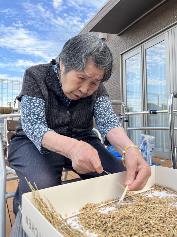 ★バルコニーの稲(稲こき)★
