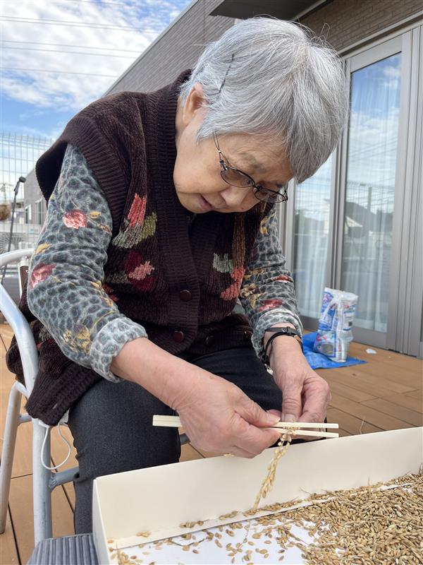 機械はないので、割り箸で地道に米粒を取ります。