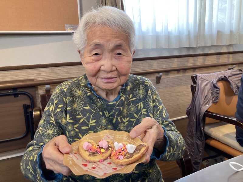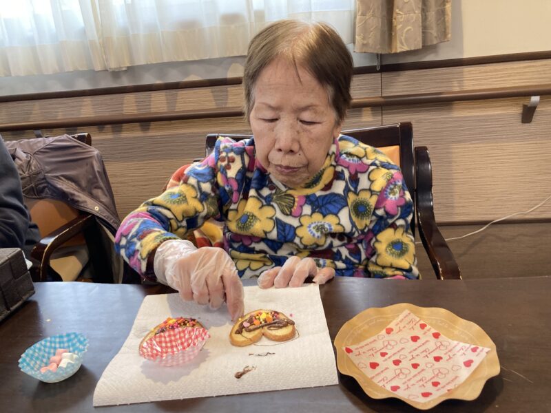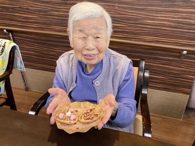 午後からはバレンタインクッキングでハート型のパイをご自身でデコレーションしていただきおやつに召し上がっていただきました。どれも可愛いらしく美味しそうに出来上がっていましたね💕💕💕