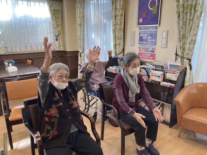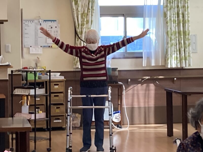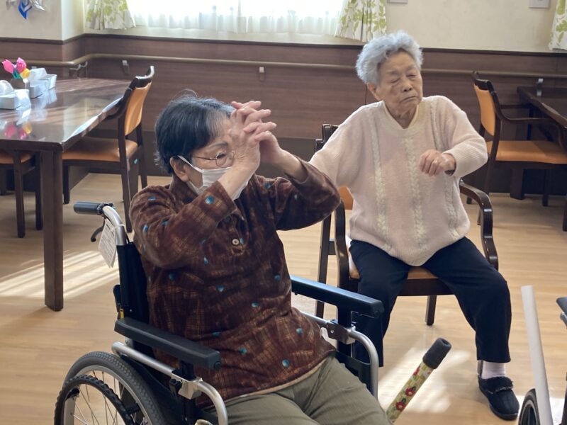 午前中はラジオ体操と歌謡曲に乗せた体操でしっかり体を動かして頂きました。