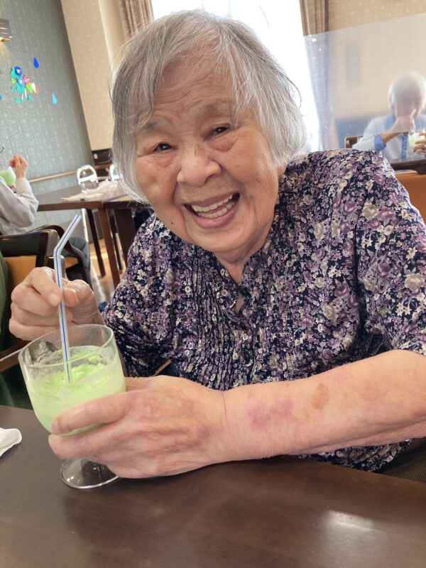 午後のレクではクリームソーダーを召し上がり皆さん「美味しい🥰」っと笑顔がいっぱい見られました✨