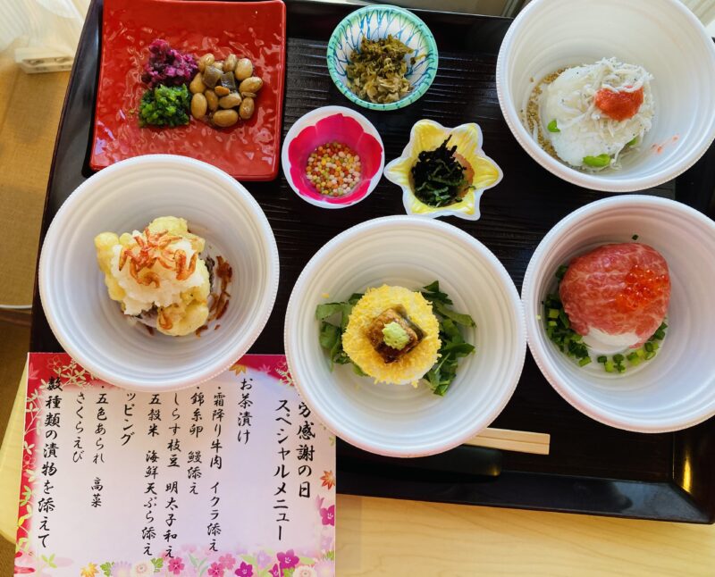 本日の昼食は、一日早いですが勤労感謝の日スペシャルメニューでした🍽️