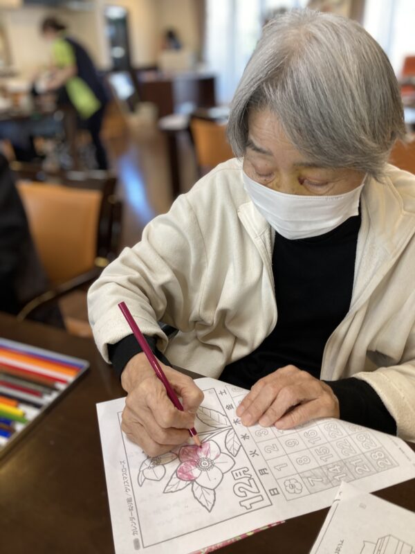 午後は折り紙を楽しんだり、カレンダーの塗り絵をするなど、個々に製作ものに取り組まれていました💪
