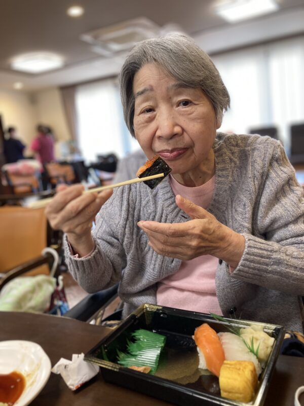 本日はお昼にお取り寄せのお寿司🍣を召し上がりました。皆様美味しい😊と笑顔で召し上がっていました✨