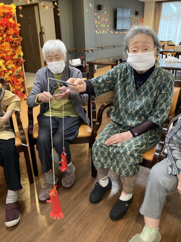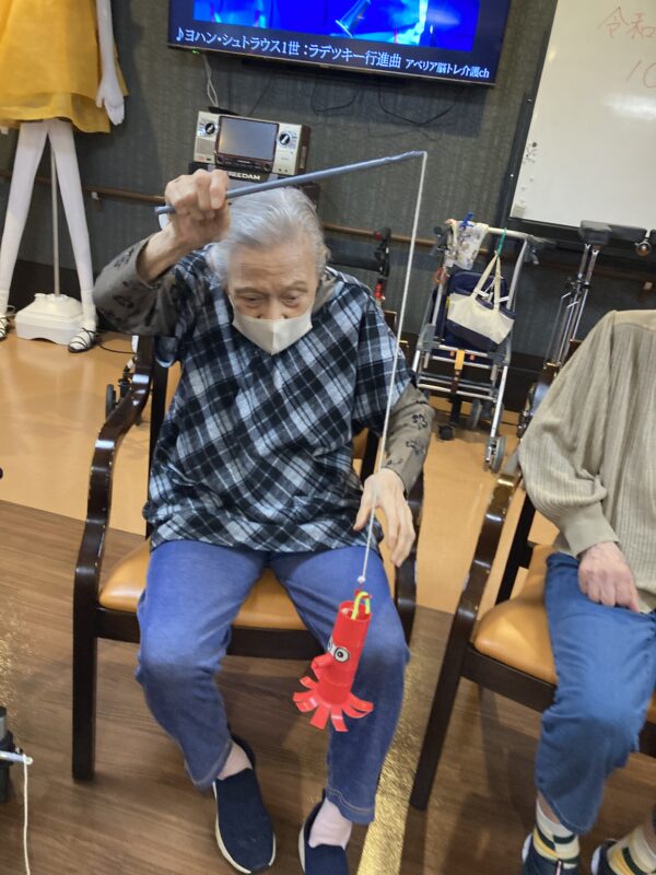 本日午前は体操、午後はボール送り・タコさん釣りをしました。ボール送りでは皆様慎重に集中しながら行い、タコさん釣りでは楽しく釣れたら取ったぞー!と笑顔で盛り上がりました😊