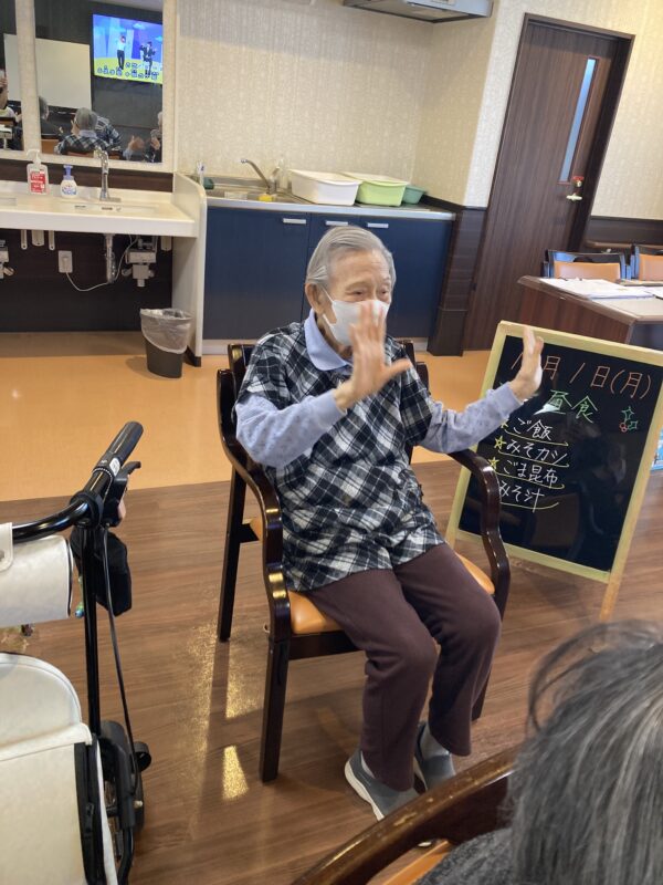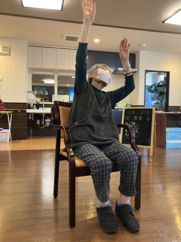 今日は午前中に、皆さまで体操の時間を過ごしました。ゆったりと体を動かしながら、笑顔もたくさん見られました😊
