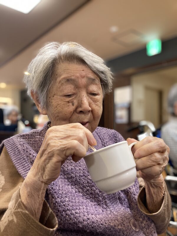 職員が心を込めて作ったお汁粉を、皆さまに振る舞いました🍵🫘「甘くておいしいね」「昔は家でも作ったよ」と、懐かしい思い出話にも花が咲き、和やかな時間となりました🌸