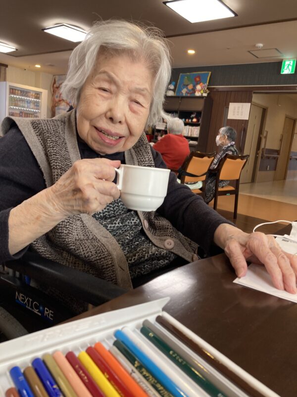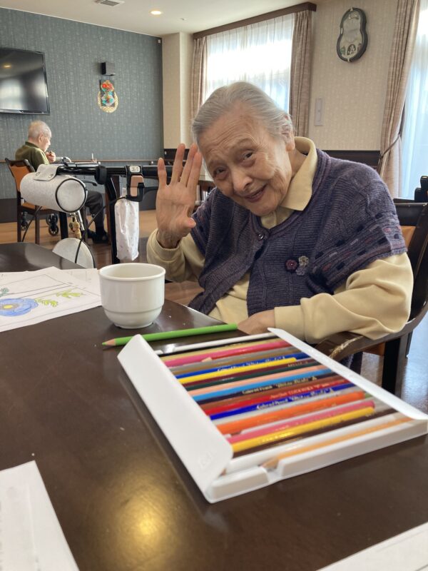 午後は一階でカラオケに参加される方🎤、塗り絵を楽しまれる方✏️に分かれそれぞれのお時間を楽しまれた😊