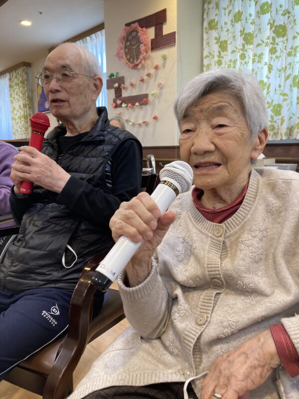 カラオケでは、懐かしい歌謡曲や童謡などを皆さんで歌い、大変盛り上がりました✨ 手拍子をしたり、一緒に口ずさんだりと、笑顔あふれる楽しい時間となりました。