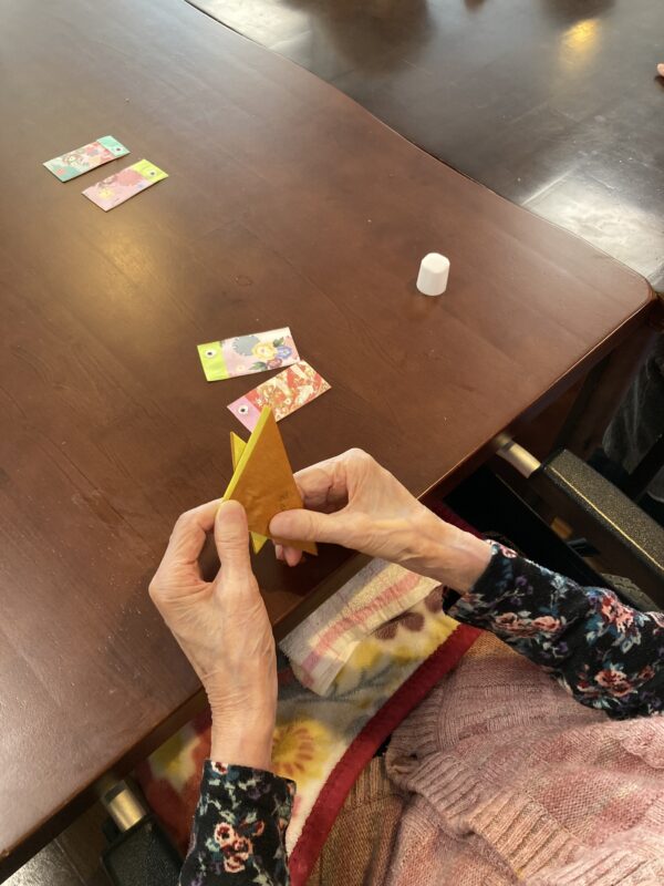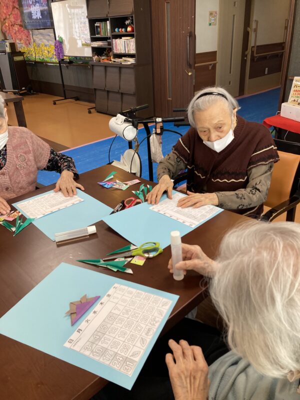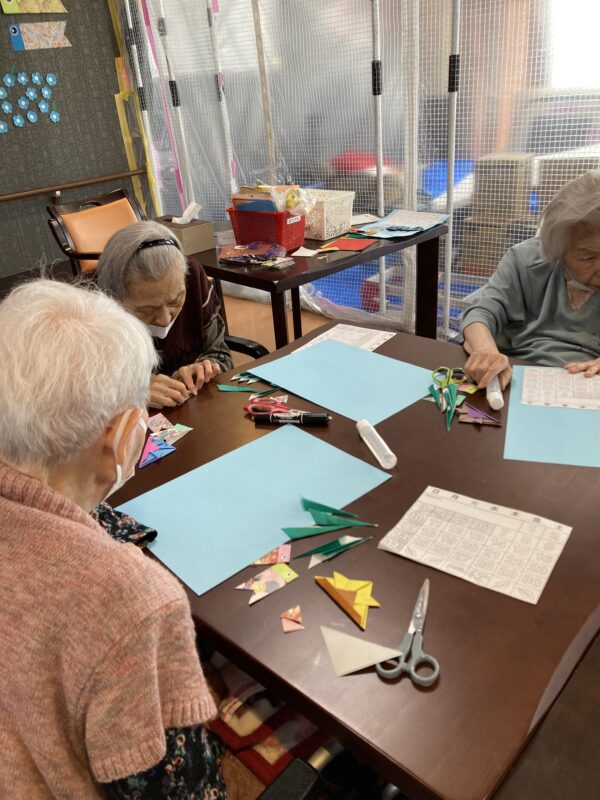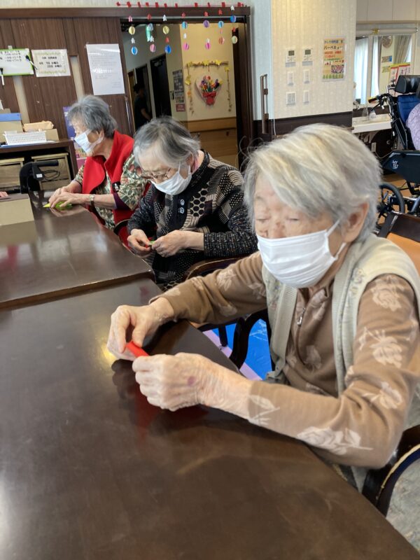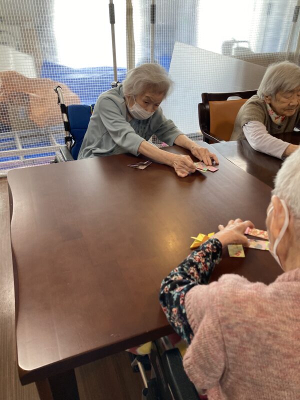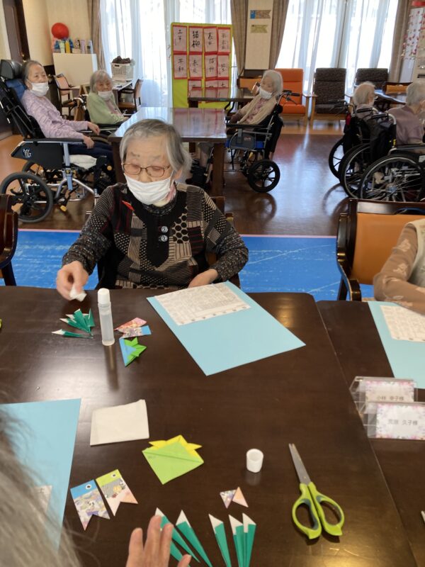 皆さまに折り紙を使って鯉のぼりや季節の飾りを作っていただき、一つひとつ丁寧に仕上げていきました😊