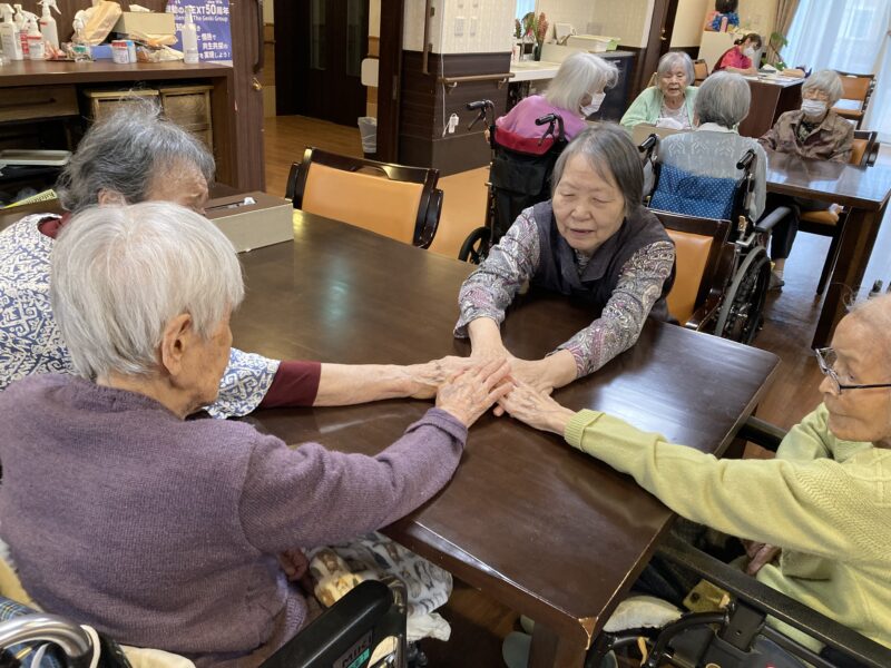 皆さんで集まって楽しそうに話をしていました。手遊びみたいなのを楽しまれました