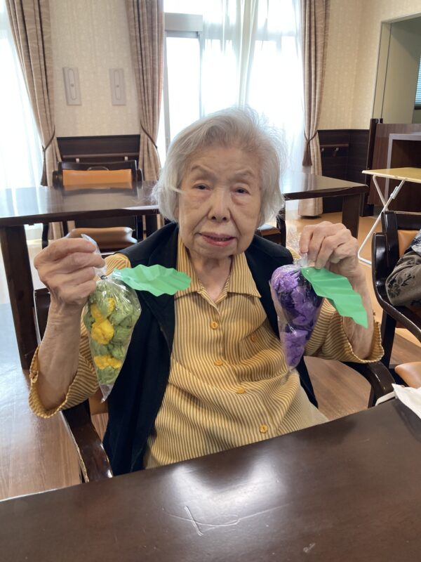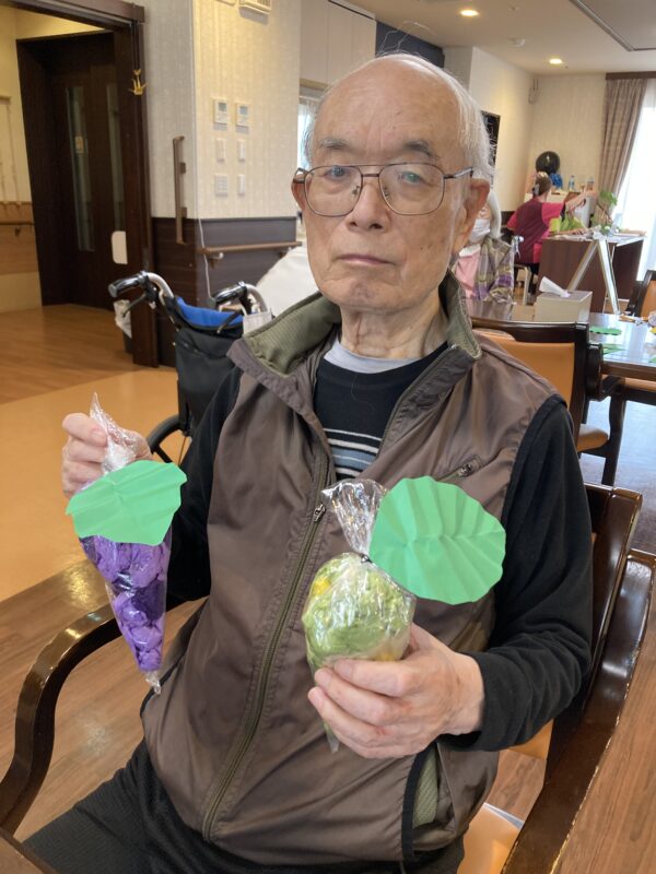 本日も皆さん元気に体操に制作に取り組んでいます。秋は「食欲の秋🍂‼️」と言う事で、葡萄🍇と柿を制作しました。美味しそうに出来上がっています😁