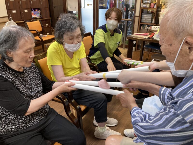 クラブ活動では物送りゲームを行い、チームワークがとても重要でした