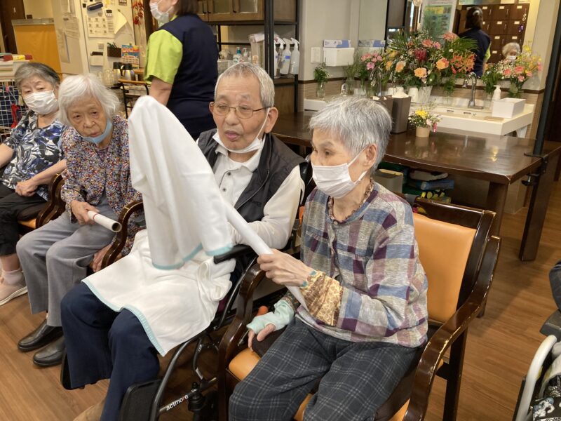 ジャンケンリレーはジャンケンに勝たないとボールを送ることが出来ず皆さん苦戦をされていましたね。物送りゲームでは送るものによって工夫をして皆さん上手に送られていました😊