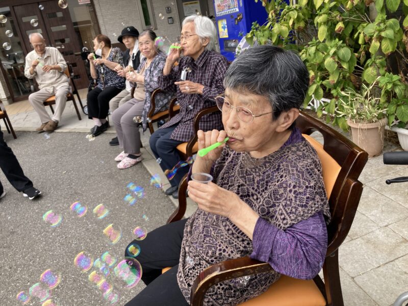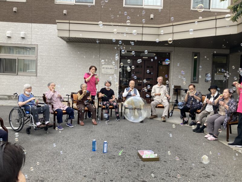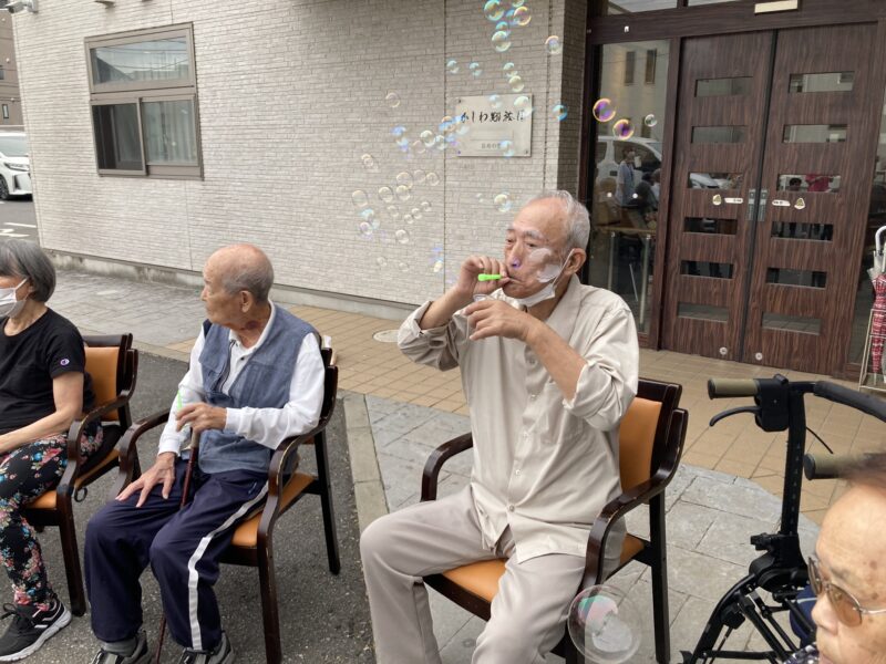 久しぶりのシャボン玉に皆さん童心に帰り素敵な笑顔が見られました😀風に乗って飛んでいく沢山のシャボン玉が幻想的でしたね✨