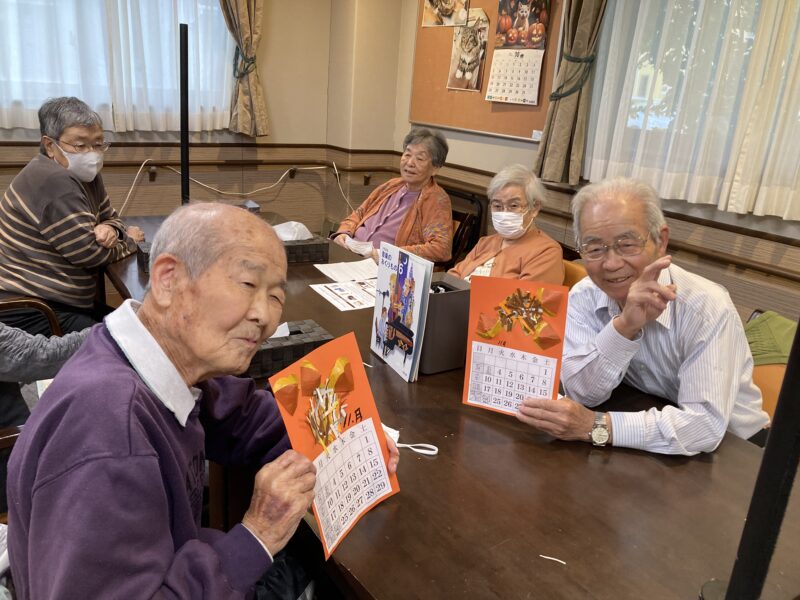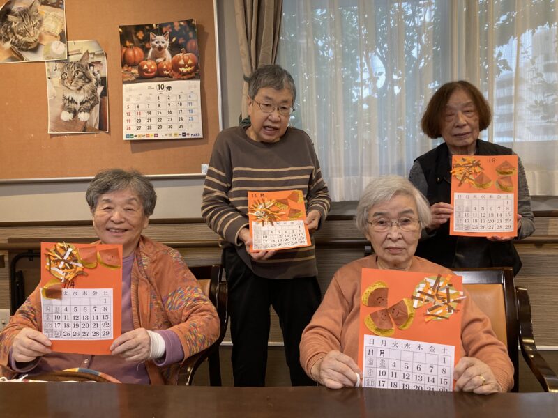 秋らしく栗を散りばめたカレンダーは手軽に季節の移ろいを感じることができ、皆さま「すっかり秋だね〜」と談笑しながら、製作を楽しまれました😊