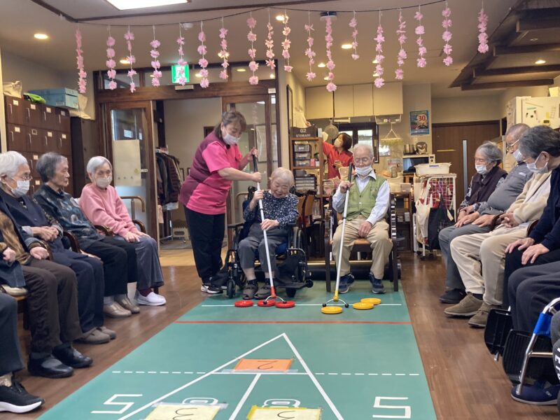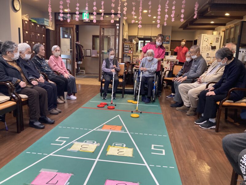 ストーンを打つ際には真剣な表情で取り組まれていました。皆さまからの「頑張れ!」と熱い声援もあり和気あいあいとした雰囲気で楽しまれました😊