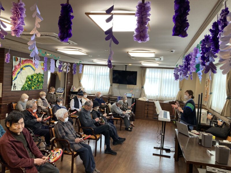 懐かしい歌をたくさん歌い、太鼓を叩いて脳トレをしました。