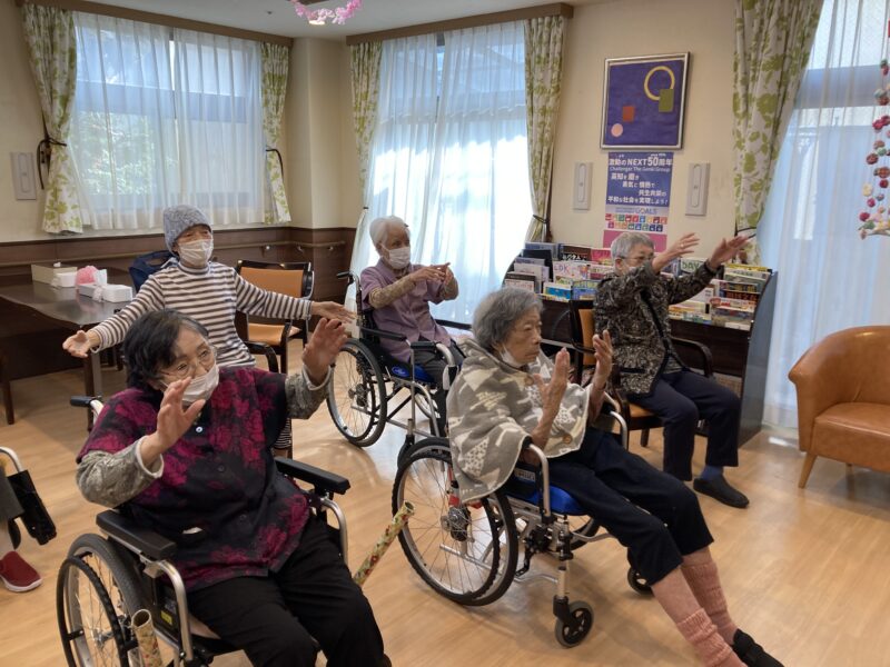 今日は、午後には天気が回復し日差しが暖かくでも、風は冷たいですが、みなさん元気に 体操やしりとりをして楽しくすごされました😊