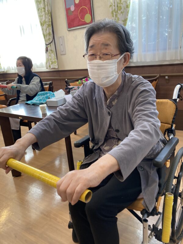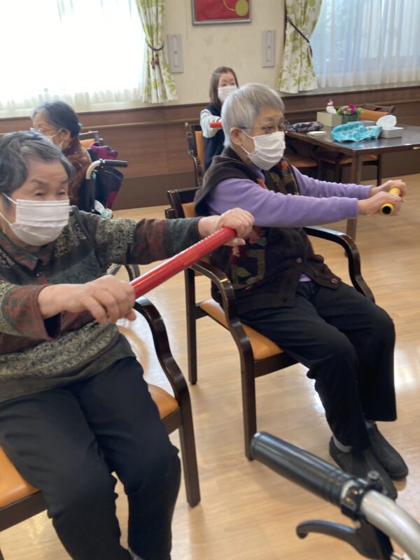 本日の午前中はラジオ体操と棒を使った体操を行なっています。