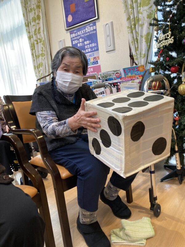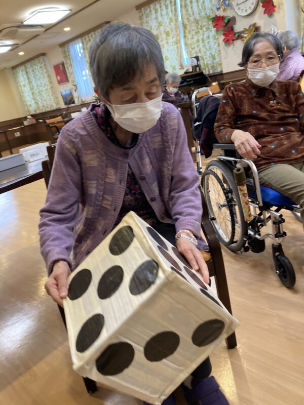 午後は毎月恒例の体重測定をした後、サイコロを使ってレクリエーションを行なっています。皆さん一生懸命に身体を動かしました。